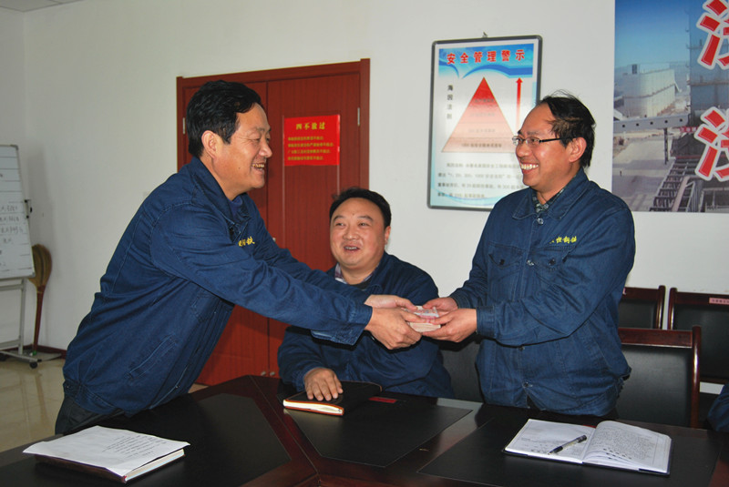 本网讯 (记者 王鹏征) 11月26日上午,公司副总经理周瑞华来到焦化炼焦厂,亲自将2万元奖金发到厂长李春建的手中,以鼓励该厂连续创高产取得的佳绩,并要求炼焦厂不断突破生产瓶颈,在提高焦炭质量的同时,尽快实现稳产高产的目标。