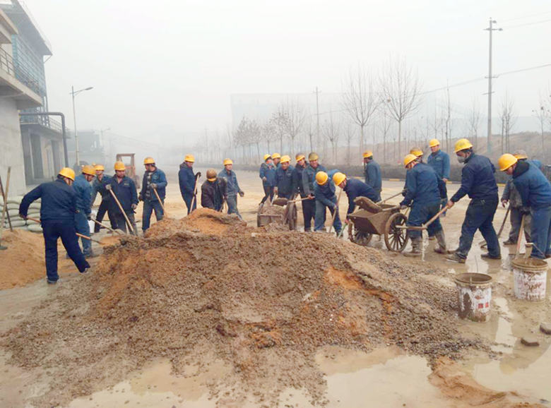 面对如此大的施工量,该厂员工加班加点施工,没有一人喊苦喊累,就连女工们也主动加入硬化大军,帮忙推小车、上料、上水,和男工们一起和料、推车、倒运、摊平、收面,每道工序都在有条不紊地进行着。虽已时值寒冬,但员工们没干多久,个个都脸上流汗、头上冒热气……