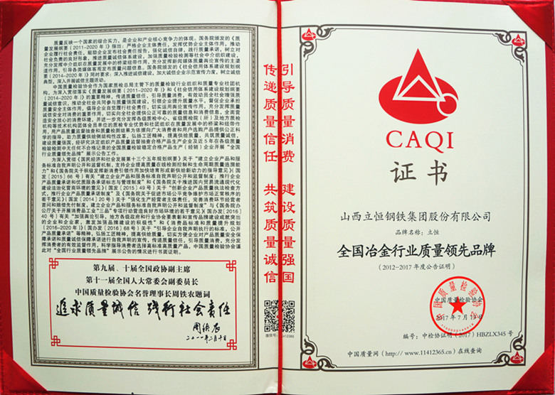 公司十分重视品牌创建工作,将提升产品质量作为企业的生命线来抓,主导产品盘螺、高线引进国内一流的迷你轧机设备,将轧机直接升级到六代,不仅提高了产品力学性能,还大大提升了外观质量。“立恒牌”钢材主要流通陕西、山西、四川、甘肃等西北、西南市场,区域年销售量超过250万吨,不仅应用于成渝高铁、武汉地铁、蒙华铁路、大西高铁、郑万铁路等铁路工程,还参建了公路隧道、民生工程等重点项目,连续多年被评为“全国冶金行业质量领先品牌”“山西省名牌产品”。