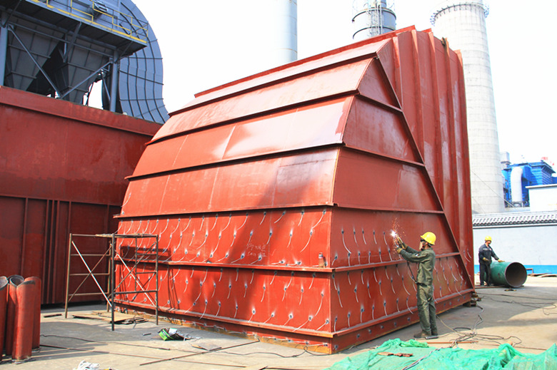 该项目自动工以来,经过一个月的紧张施工,目前,土建开挖和混凝土基座的浇筑施工已经完成,施工人员正在吊车的配合下,对换热器基座的钢结构立柱进行吊装,对焊接制作完成的原烟道进行安装。