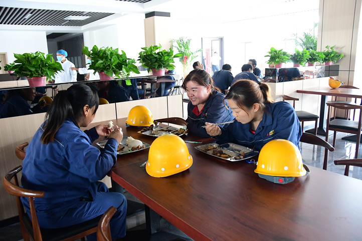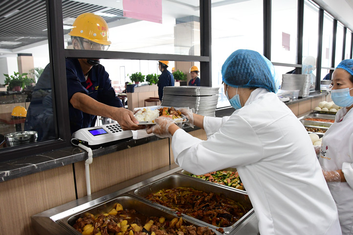 此前,由于种种原因,焦化厂建成投产后,厂区没有配套餐厅,且周边300米没有饭店,给员工就餐带来很大不便。为彻底解决这一难题,方便员工就餐,提升员工幸福指数,集团投资800余万元在焦化厂办公楼东侧新建了一座可容纳600余人用餐的…餐厅,并于国庆节正式投用。该餐厅为二层建筑,其中,一层集餐厅、洗浴为一体,二层为员工宿舍。走进餐厅,白色、浅棕色装修风格,深木色的餐桌餐椅,生机勃勃的绿植,崭新干净的厨房厨具,将餐厅装饰的温馨整洁、宽敞明亮。开业当天中午,员工下班后高高兴兴地走进餐厅,井然有序地进行办卡、打饭。看着色泽诱人、美味可口的饭菜,想着不出厂区就能品尝到餐桌上的美食,大家赞不绝口。