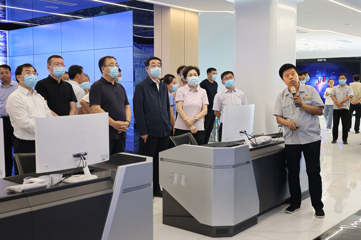 省政协副主席、省工商联主席李武章(中)带领调研组在集团智能管控中心调研