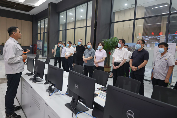 李武章一行先后来到智能管控中心、沃能化工中控室、绿恒果蔬脆项目现场,通过实地查看、听取汇报等方式,详细了解了集团能耗双控、产业转型、减污降碳等情况。在智能管控中心,李武章一行听取了张天福对企业生产经营、节能降耗、超低排放及技术创新等工作的汇报,重点了解了集团“钢—焦—化—氢”联产降碳路径和集团低碳创新发展规划;在沃能化工中控室,调研组听取了乙二醇联产LNG项目的工艺流程、产品用途以及在技术、环保、降耗等方面的优势介绍;来到集团绿恒果蔬脆项目现场,调研组一行走进生产车间,仔细察看了果蔬脆产品生产工艺,对集团立足自身产业优势、加快推进一二三产业融合发展、构建现代化、自动化绿色产业体系取得的成效给予充分肯定。