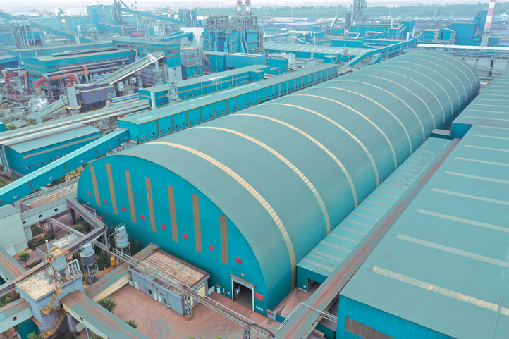 同时,集团高标准建设全封闭料棚,物料全部入棚,棚内安装雾炮喷淋系统,实现抑尘全覆盖;物料输送皮带全部采用封闭通廊,对易尘点进行二次封闭,实现“源头无尘”;料棚出口设置全自动智能洗车机。炼钢厂采用一罐到底生产模式,铁水罐全程加包盖,减少无组织粉尘逸散;铁水罐运输采用电动车,减少燃油车辆尾气排放,实现清洁运输。