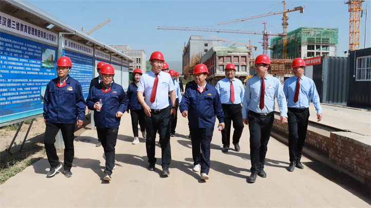 在项目建设现场,杨旭枝轮值董事长指出,日前山西桐封技师学院项目已被列为2023年山西省重点工程项目,标志着该项目受到省、市、县各级党委政府的高度重视。项目自开工建设以来,在北京汉德三维集团和山西晋南钢铁集团共同努力下,始终坚持高标准、严要求,强化责任意识、效率观念,抢抓时间抢进度,在确保施工安全、符合环保要求的前提下,精心组织、科学施工,项目建设进展顺利。截止目前,1号综合教学楼、1号、2号宿舍楼、餐饮美食城、图书楼、实训中心、培训中心已完成主体建设开始进行内部装修。他表示,在下一步的项目建设中,项目部全体成员将主动担当作为,继续坚持高标准规划、高质量建设、高速度推进,确保9月份如期开学。