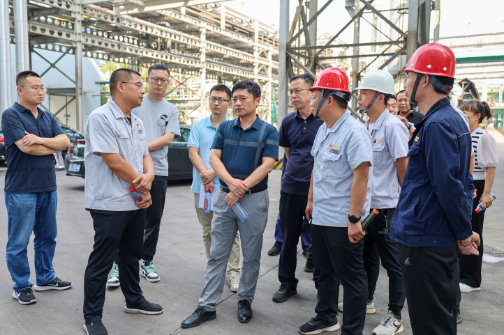 生态环境部环境规划院形势分析中心副主任饶胜(中)一行在集团厂区调研