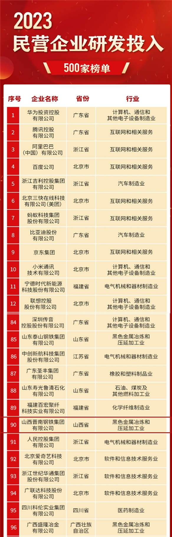 集团上榜“2023民营企业研发投入500家榜单”第90位