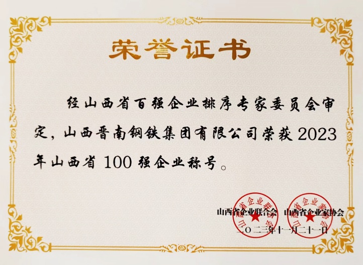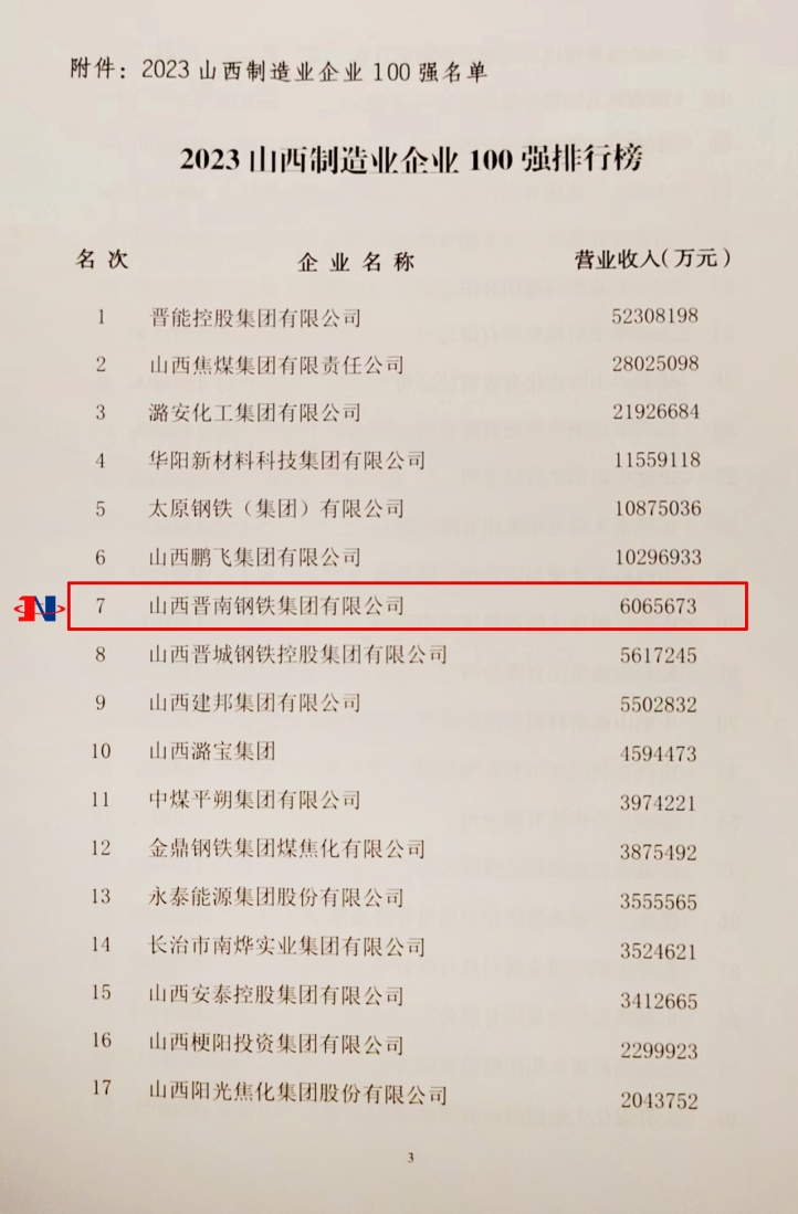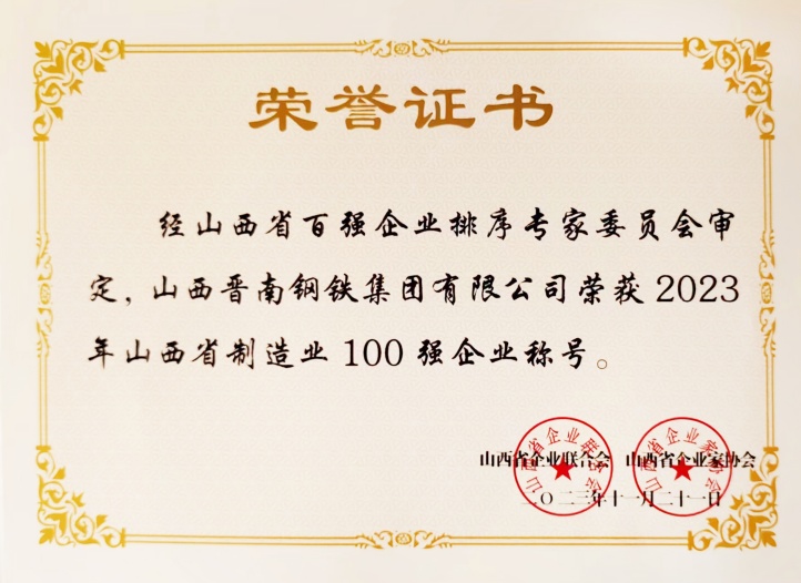 11月21日,在太原召开的2023山西100强高峰论坛上,山西省企业联合会、山西省企业家协会发布“2023山西企业100强”,集团位列第9位,同时发布“2023山西制造业企业100强”,集团位列第7位,名次较去年均有所上升。