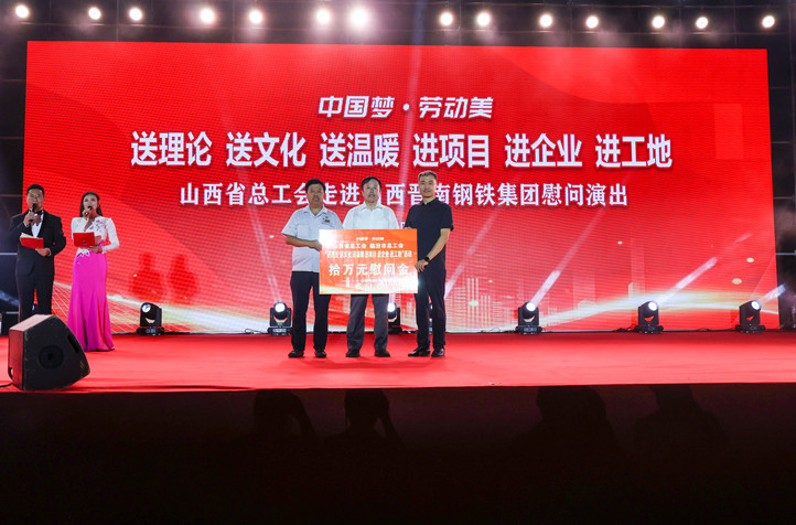 8月17日,省总工会“送理论、送文化、送温暖,进项目、进企业、进工地”三送三进慰问演出走进集团,为奋战在一线的员工送上亲切的关怀和精彩的文化盛宴,同时省总工会和市总工会为集团赠送慰问金。