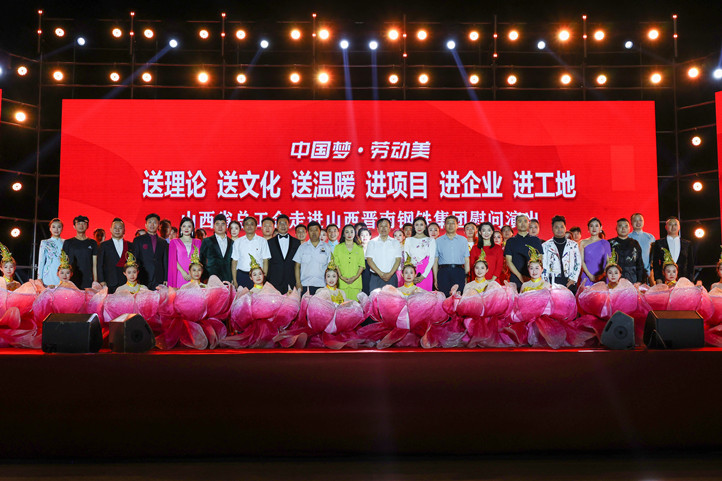 省总工会宣传教育和网络工作部一级调研员郭励新,临汾市人大常委会副主任、市总工会主席郑步电,临汾市总工会党组书记、常务副主席苏文龙,曲沃县委副书记张淑明,曲沃县总工会主席何国庆出席了演出活动;集团党委副书记、总裁张天福,党委委员、生产副总裁武建伟,党委副书记兼总裁办主任赵朋,党委委员、经营副总裁助理李小勇,财务副总监李玉梅,工会主席李明及集团厂处级领导、2024年劳动模范、职工代表等共同观看了演出。