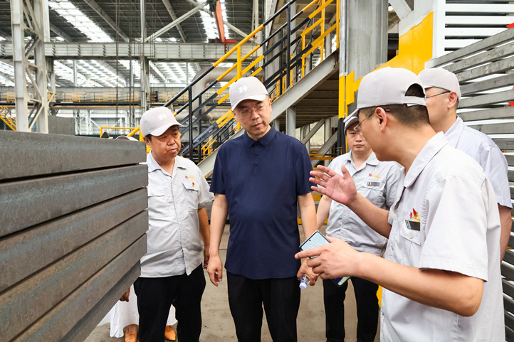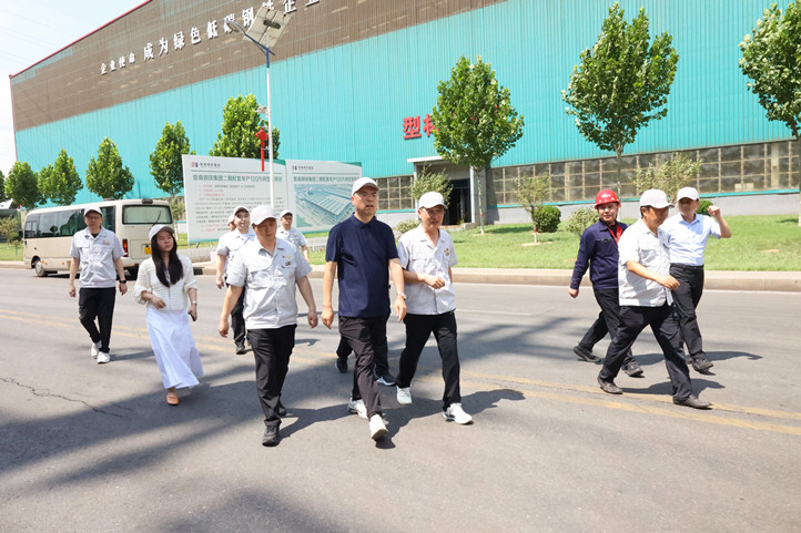 调研期间,王建老师在集团领导陪同下,先后参观了型材五车间、焦化厂一键炼焦集控中心、智能管控中心、沃能化工中控大厅、定尺车间、炼铁三号高炉、型材四车间、型材三车间、型材一车间、镀锌厂、太子湖光伏园区及恒瑞昆镀锌车间,详细了解了集团生产工艺流程、产品规格及营销模式等情况。