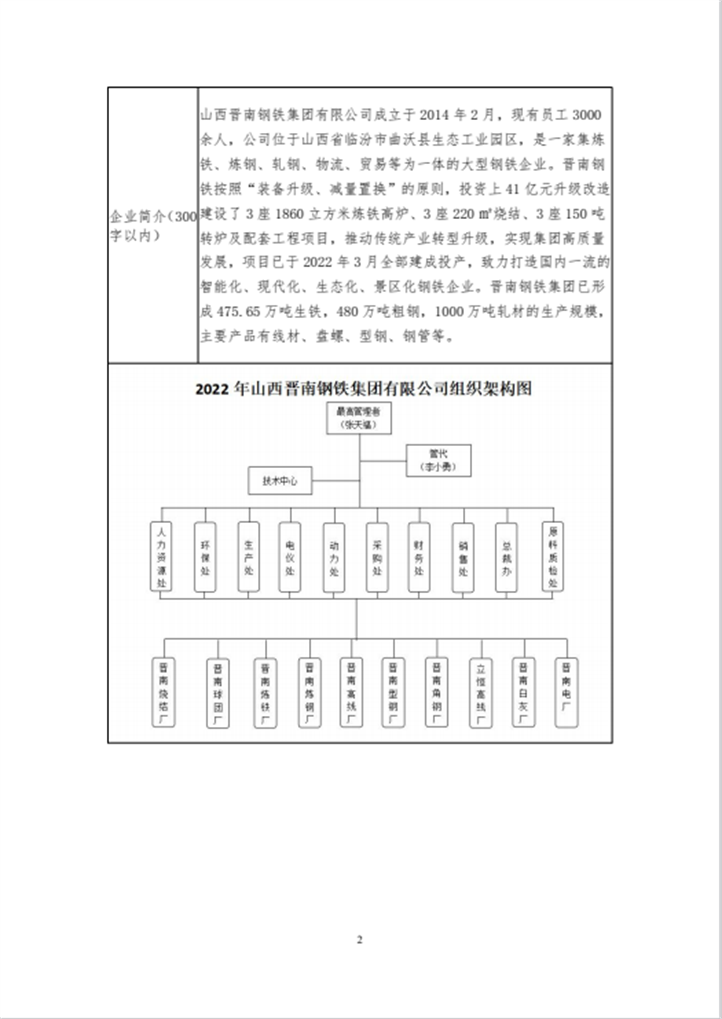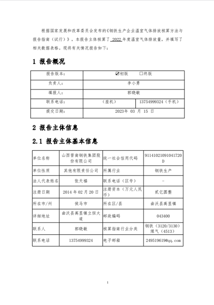 摘要:山西晋南钢铁集团有限公司 2023 年度 温室气体排放报告